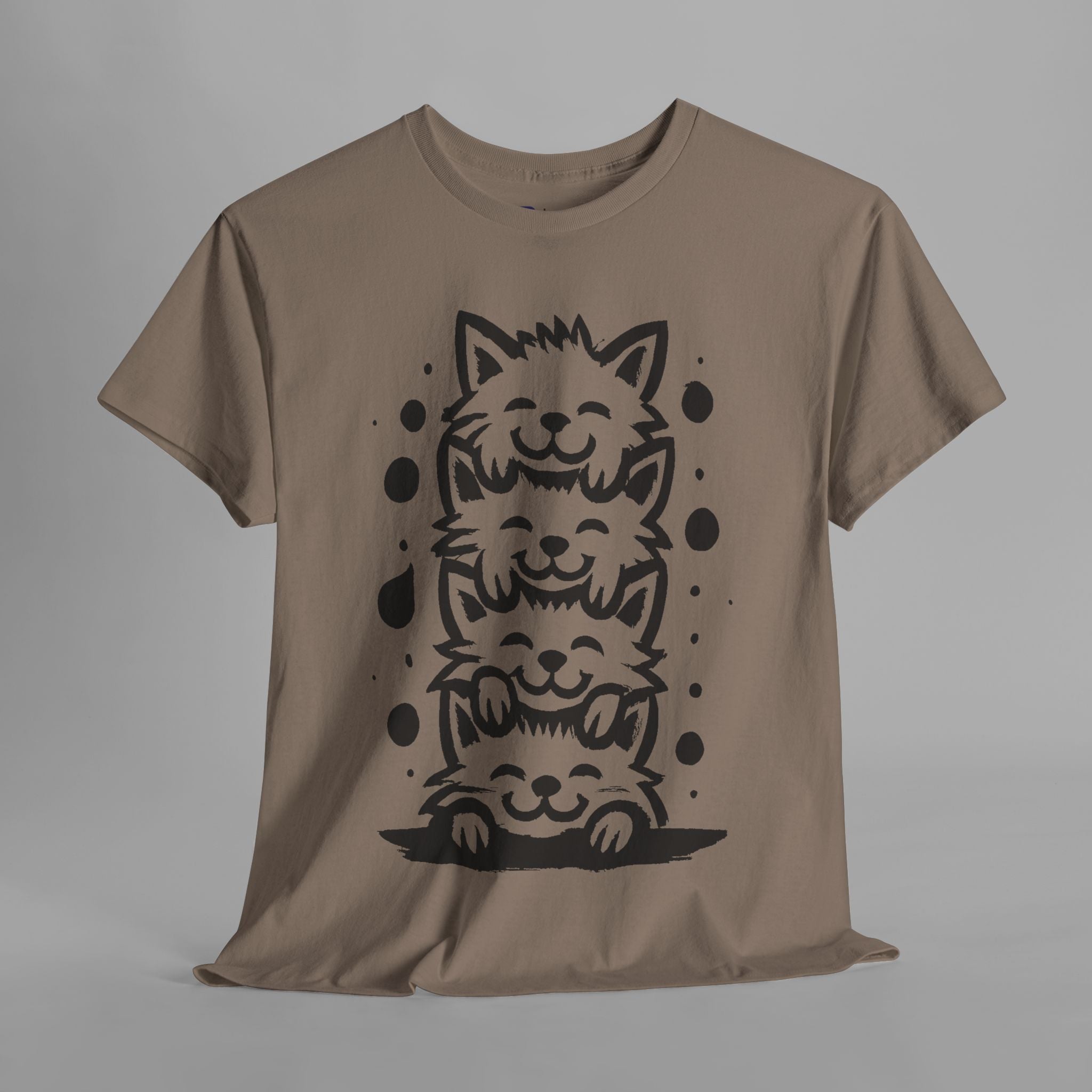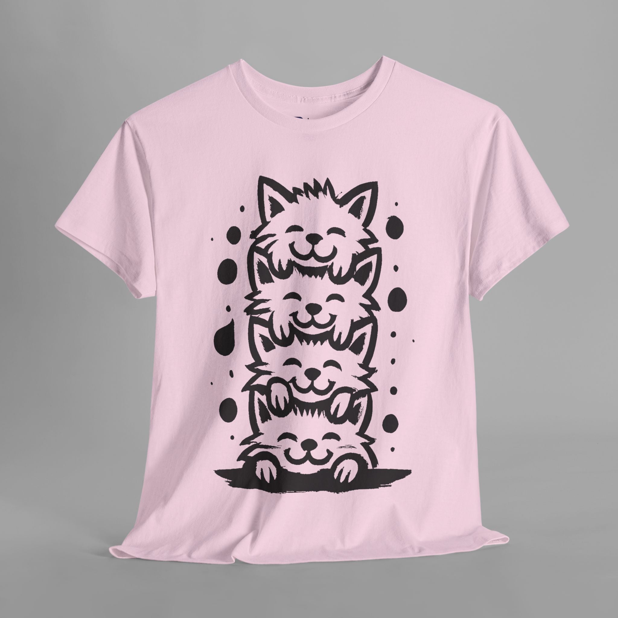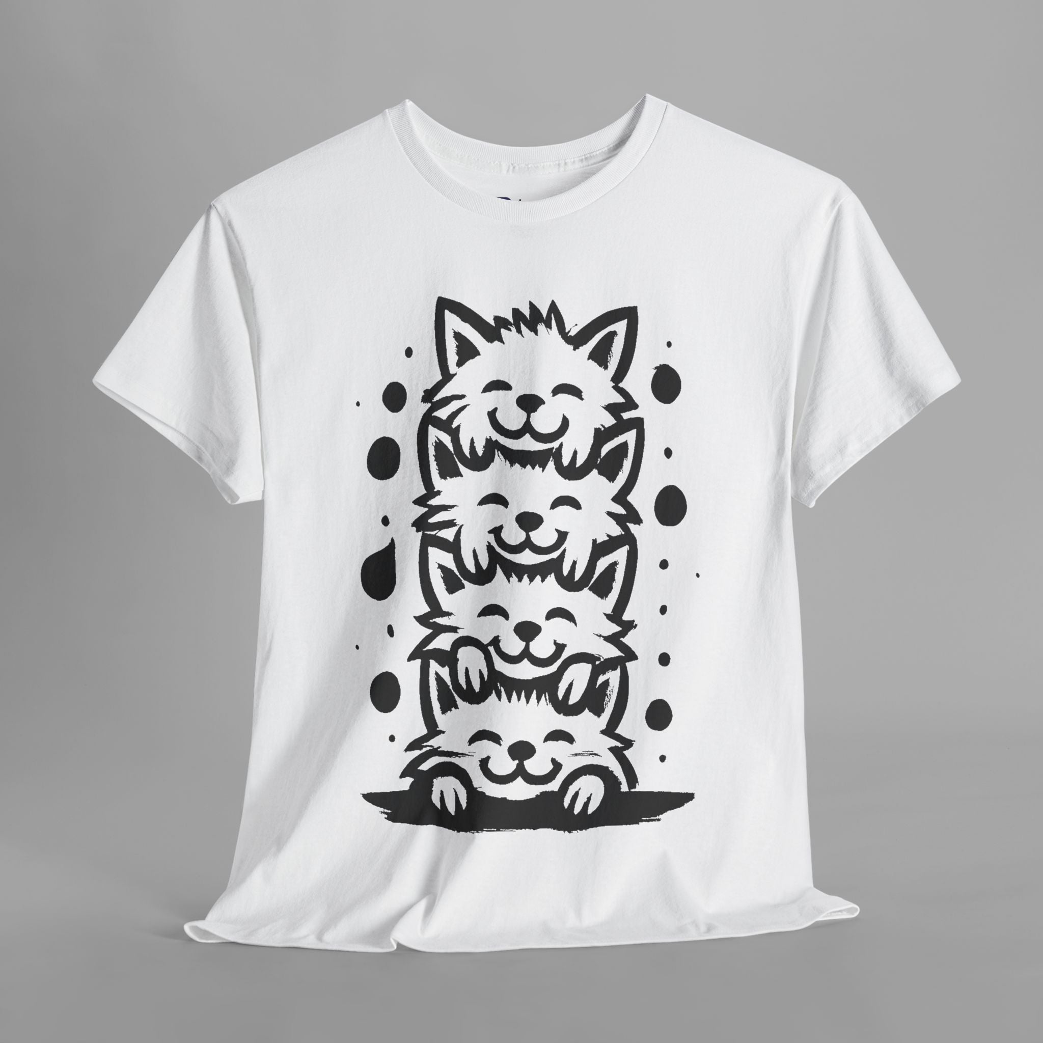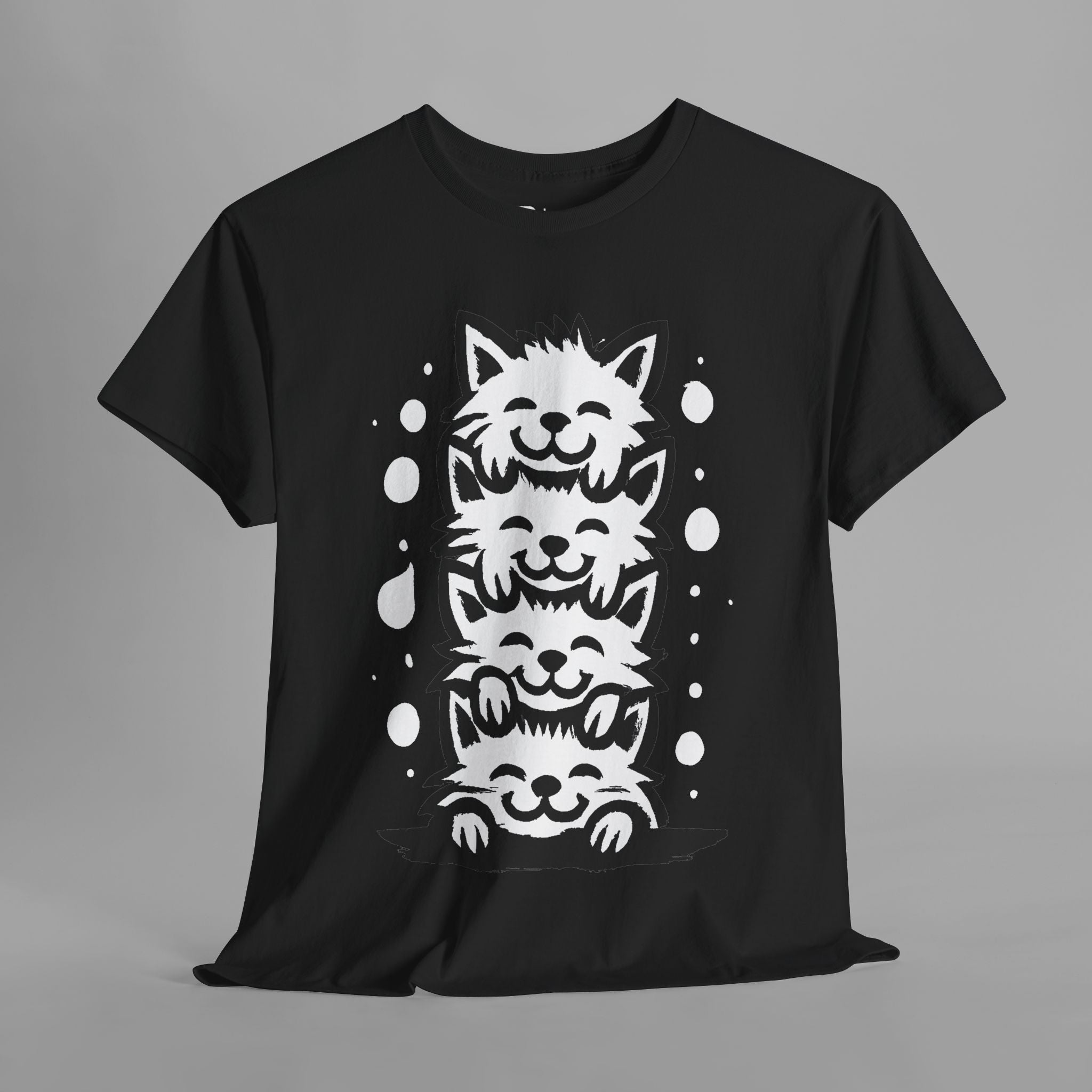 This delightful minimalist design showcases the beauty of simplicity through its charming interpretation of feline companionship. The artist's masterful use of negative space and bold brush strokes creates four distinct cat personalities stacked in perfect harmony, each with endearing expressions and subtle character details.