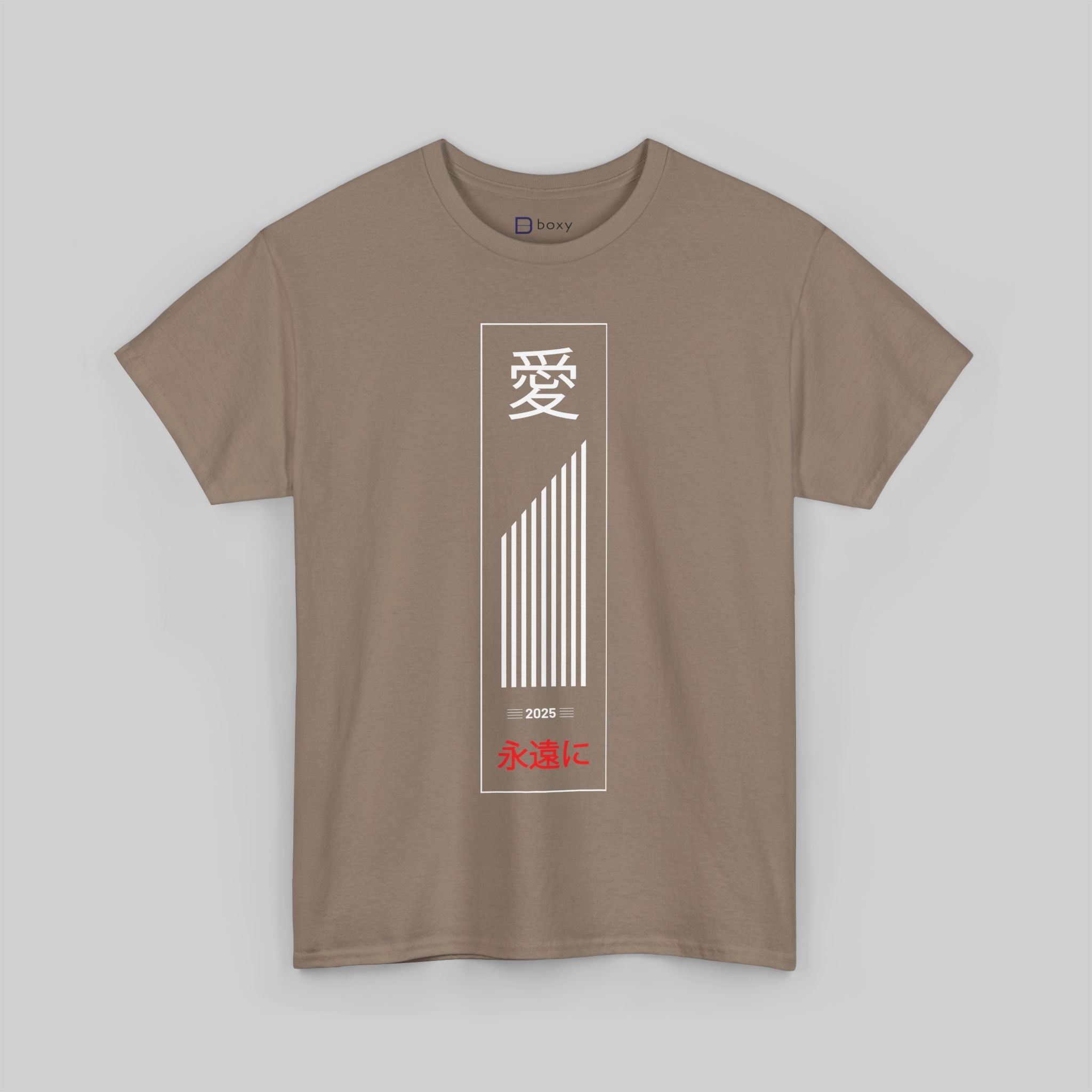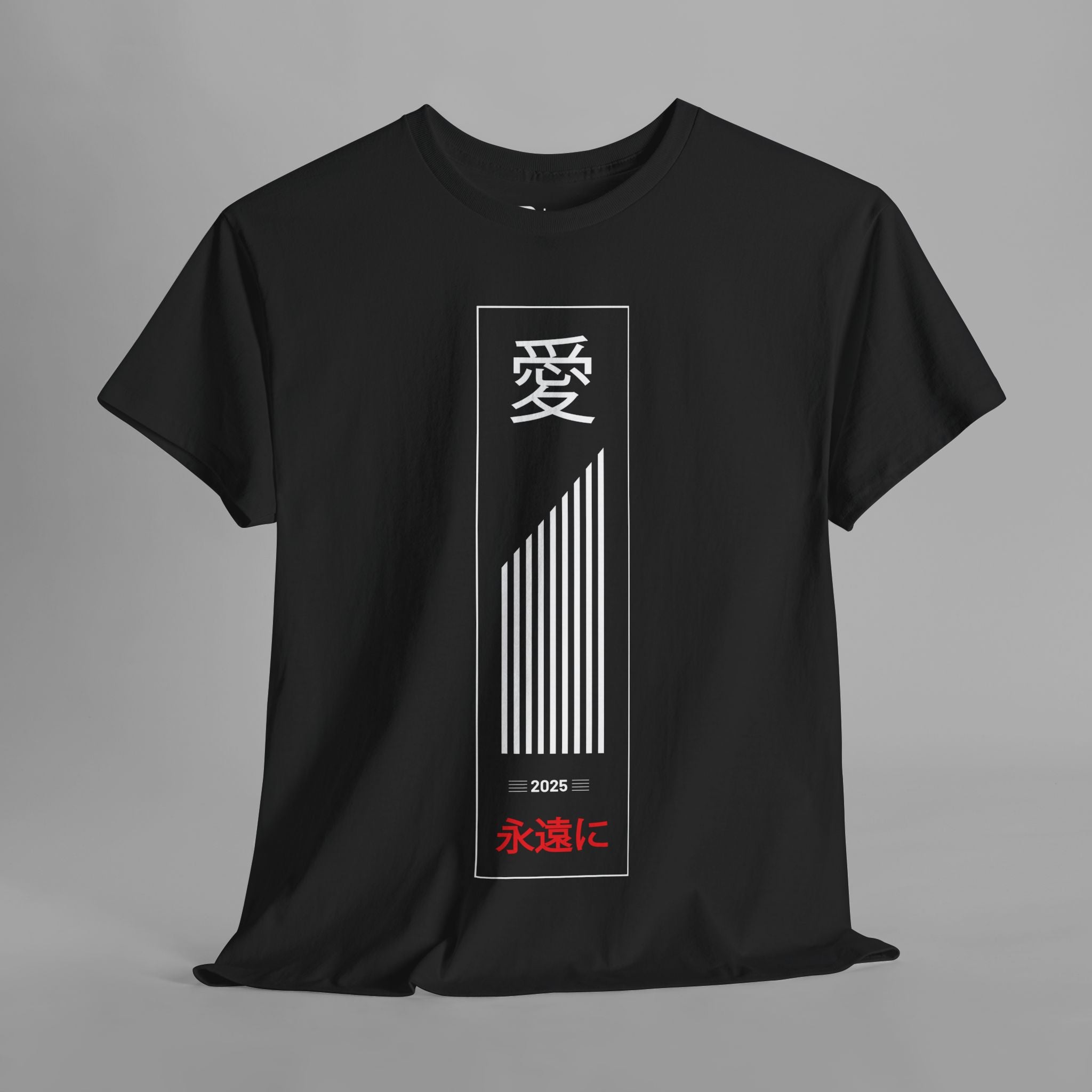 This design appeals to those who appreciate Japanese culture, meaningful typography, and the timeless power of love as a universal human experience. The classic black, white, and red color palette ensures versatility while the traditional calligraphy honors the depth and beauty of Japanese written art and philosophy.